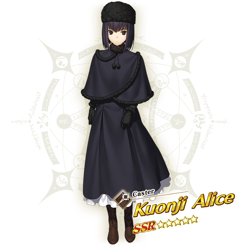 New Limited Time Servant "★5 (SSR) Kuonji Alice" and four Limited Time Craft Essences will be available for Pickup in a Limited Time Saint Quartz Summon!