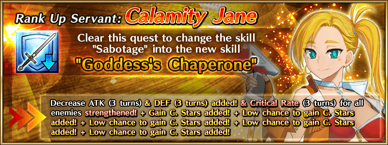 A Servant Rank Up Quest to strengthen ★4 (SR) Calamity Jane will be permanently added to Chaldea Gate.