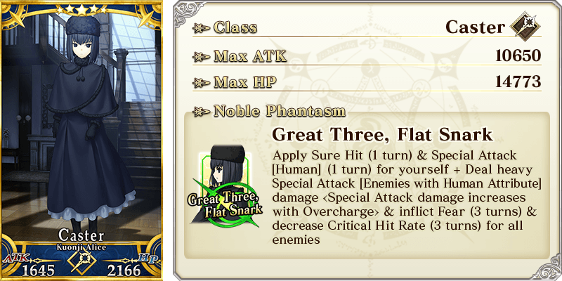 * The name and animations displayed for ★5 (SSR) Kuonji Alice's Noble Phantasm will change based on Ascension stage.