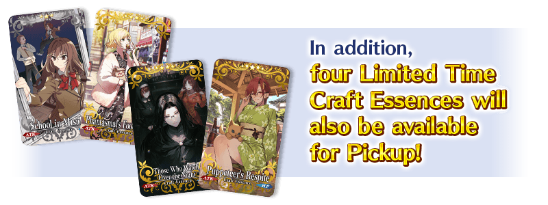 During the Pickup Period, the Pickup Servants and Pickup Craft Essences will have an increased drop rate!