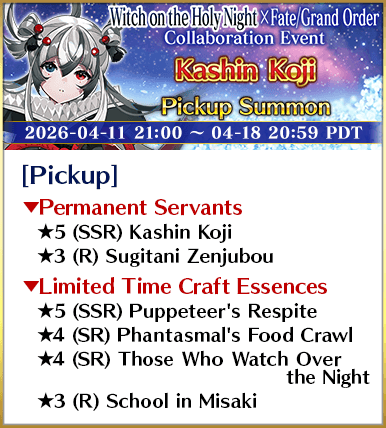 "Witch on the Holy Night × Fate/Grand Order Collaboration Event Pickup 4 Summon" Period: