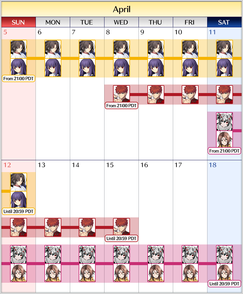 * Bonus Summons will be calculated separately for each Summon Lineup. * Please note that the Summon Period for each Pickup Summon will differ. * In this Summon, only the Pickup ★5 (SSR) Servant in each individual Summon will be eligible for the "Guaranteed Summon" feature.