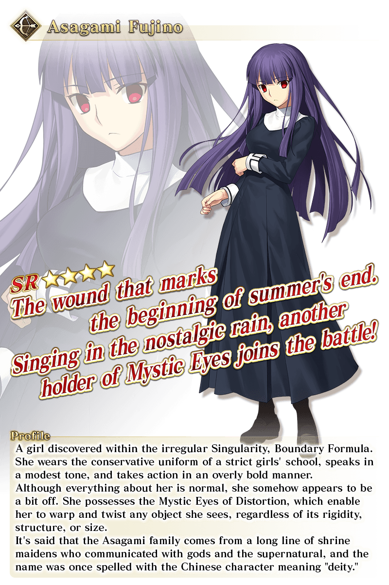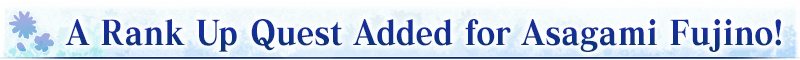 A Servant Rank Up Quest to strengthen ★4 (SR) Asagami Fujino will be permanently added to Chaldea Gate.