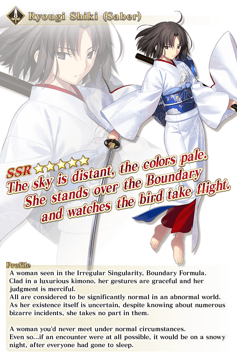 - ★5 (SSR) Ryougi Shiki (Saber)