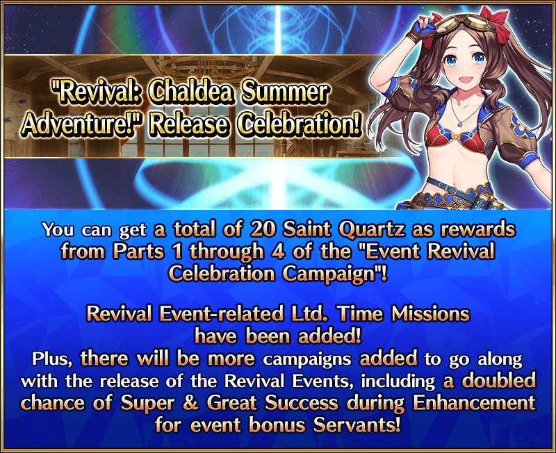 The Limited Time Event "Revival: Chaldea Summer Adventure! A Boy Pursuing Dreams and a Girl Who Dreams" and more will also be ongoing!