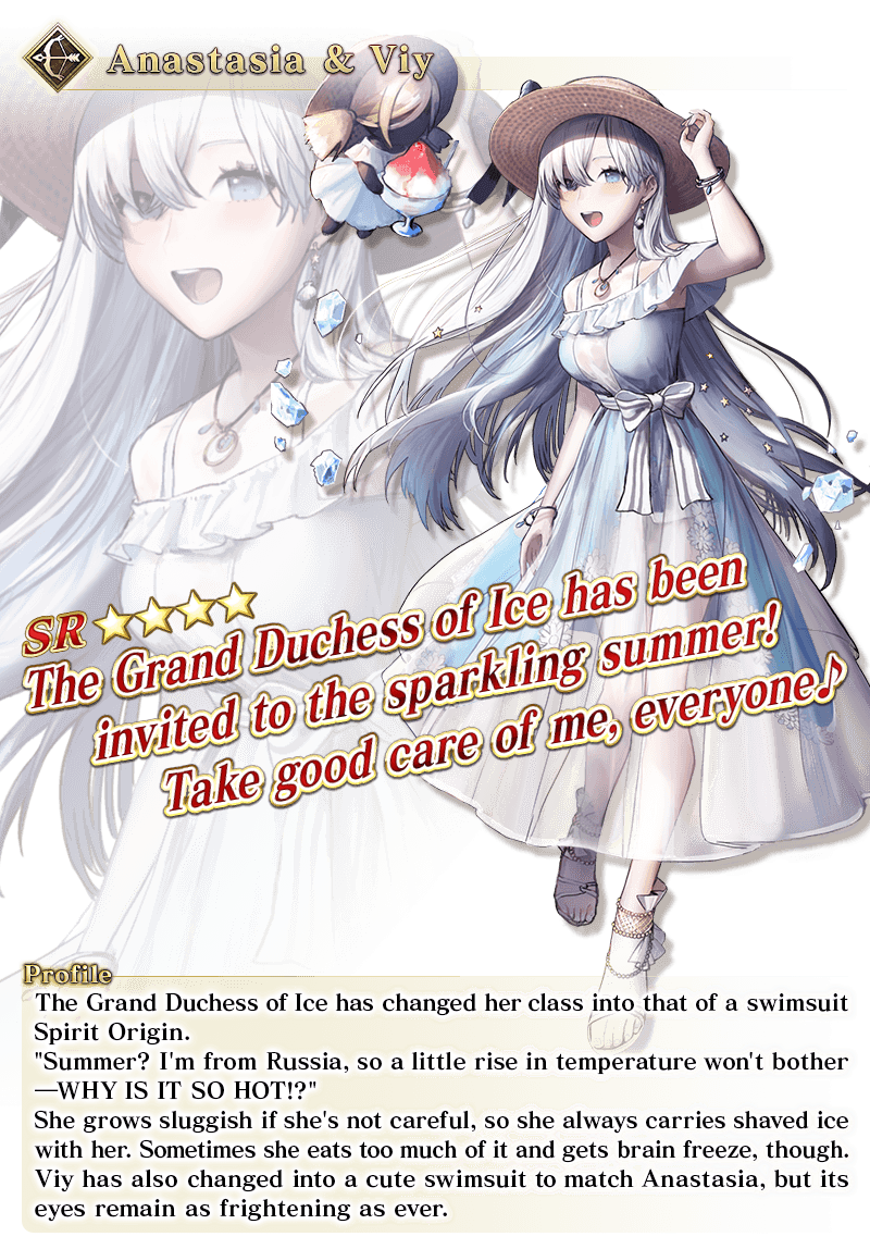 About Featured Servants: * The following Limited Time Servant(s) will not be added to Story Summon after the Pickup Summon period ends. - ★5 (SSR) Okita Souji Alter (Saber) - ★4 (SR) Anastasia & Viy - ★4 (SR) Charlotte Corday (Caster) * Servants added to Story Summon through story progression will not be summonable. Please be sure to confirm the lineup before summoning.