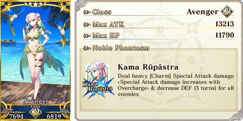 * The name and animations displayed for ★5 (SSR) Kama (Avenger)'s Noble Phantasm will change based on Ascension stage.