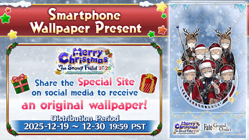 We'll be distributing a smartphone wallpaper on the Special Site for the Limited Time Event "Merry Christmas in the Snowy Field 2025 - 7 Days/8 Years Snow Carol"!