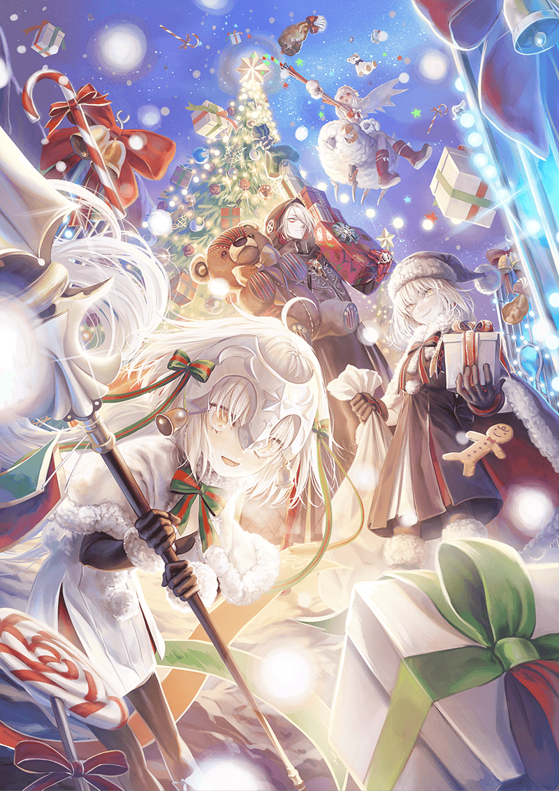 * ★4 (SR) Altria Pendragon (Santa Alter), ★4 (SR) Jeanne d'Arc Alter Santa Lily, and ★4 (SR) Karna (Santa), as well as their Spirit Origins for Noble Phantasm Enhancement, Ascension materials, and Servant Coins, will be permanently added to "Exchange Leaves of Evocation". There will be no time limit on acquisition/exchange. * After exchanging for a Distributed Servant, they can be claimed from your Present Box. * If an eligible Servant from a past Limited Time Event joined you temporarily but did not officially join your roster, any Enhancement you performed at the time will not be carried over when you obtain them with Leaves of Evocation. * If you do not have the eligible Servant in question, you will not be able to acquire their Spirit Origins for Noble Phantasm Enhancement, Ascension materials, or Servant Coins. * Even if you acquire a sixth or further copy of a Distributed Servant through "Exchange Leaves of Evocation", you will not be awarded Rare Prisms. * Some of the Servant Profile unlock requirements for ★4 (SR) Altria Pendragon (Santa Alter) and ★4 (SR) Jeanne d'Arc Alter Santa Lily have changed now that they are acquirable using Leaves of Evocation.